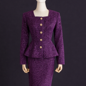 Channeling the opulence and grandeur of Florence’s golden era, this ensemble is crafted from sumptuous golden beige tweed, a hue that captures the very essence of luxury. Harmoniously styled golden buttons adorn the blazer. The golden beige palette serves as a fitting homage to the richness and splendor of Florence’s illustrious past.