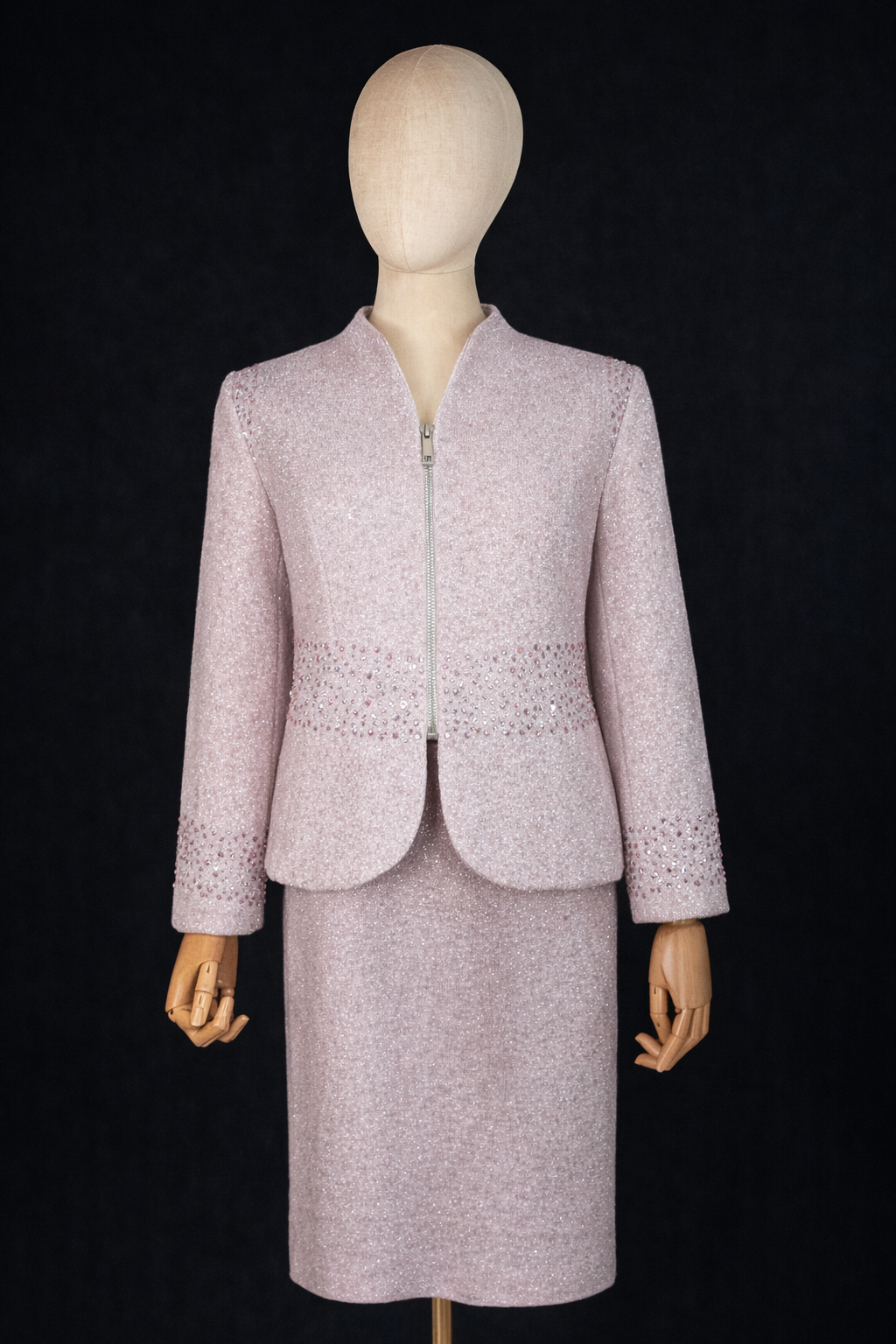 Perfect for special occasions, refined daytime events, elegant shows, luncheons, ceremonies, and luxury public appearances, this suit blends femininity, sophistication, and couture craftsmanship.
